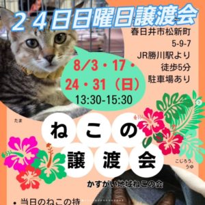 ねこの譲渡会・当日レポ《8月17日(日)》 2025年8月19日 最終更新日時 : 2025年8月19日 春日井 猫吉 この投稿をInstagramで見る かすがい地域ねこの会(@haruneko.2024)がシェアした投稿